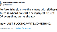- December 06, 2018 by Moosadee#programming, #stress, #C++, #pythonAgghh, so I've been refactoring my ezha engine to make it more manageable but here's the thing... I'm a C++ programmer and I don't have the same depth of knowledge in Python as I do in C++. I keep try... Continue reading